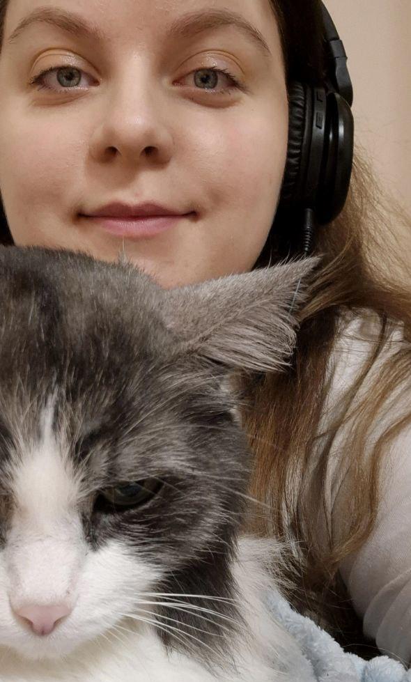 Inna works from Yerevan. In the photo with her is Dymosha, who helps with every leather project and guarantees the highest quality.